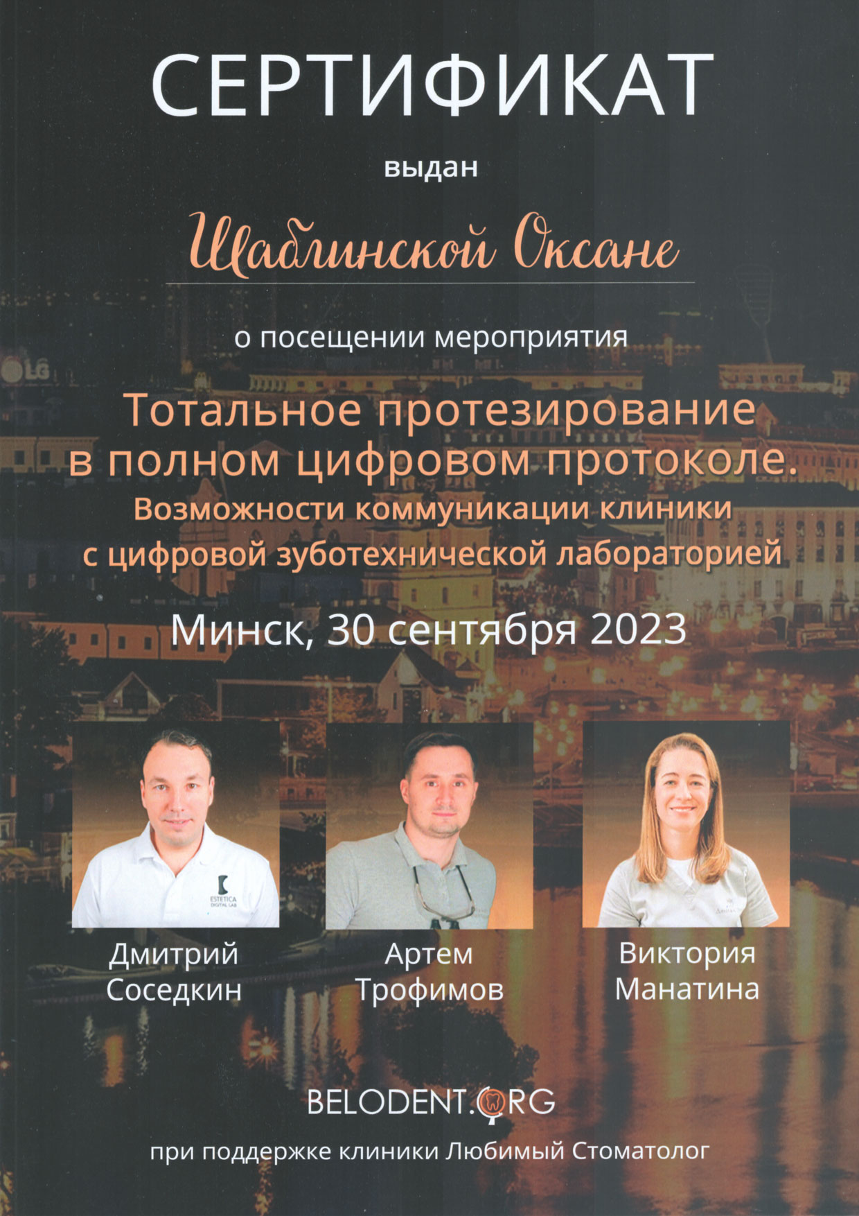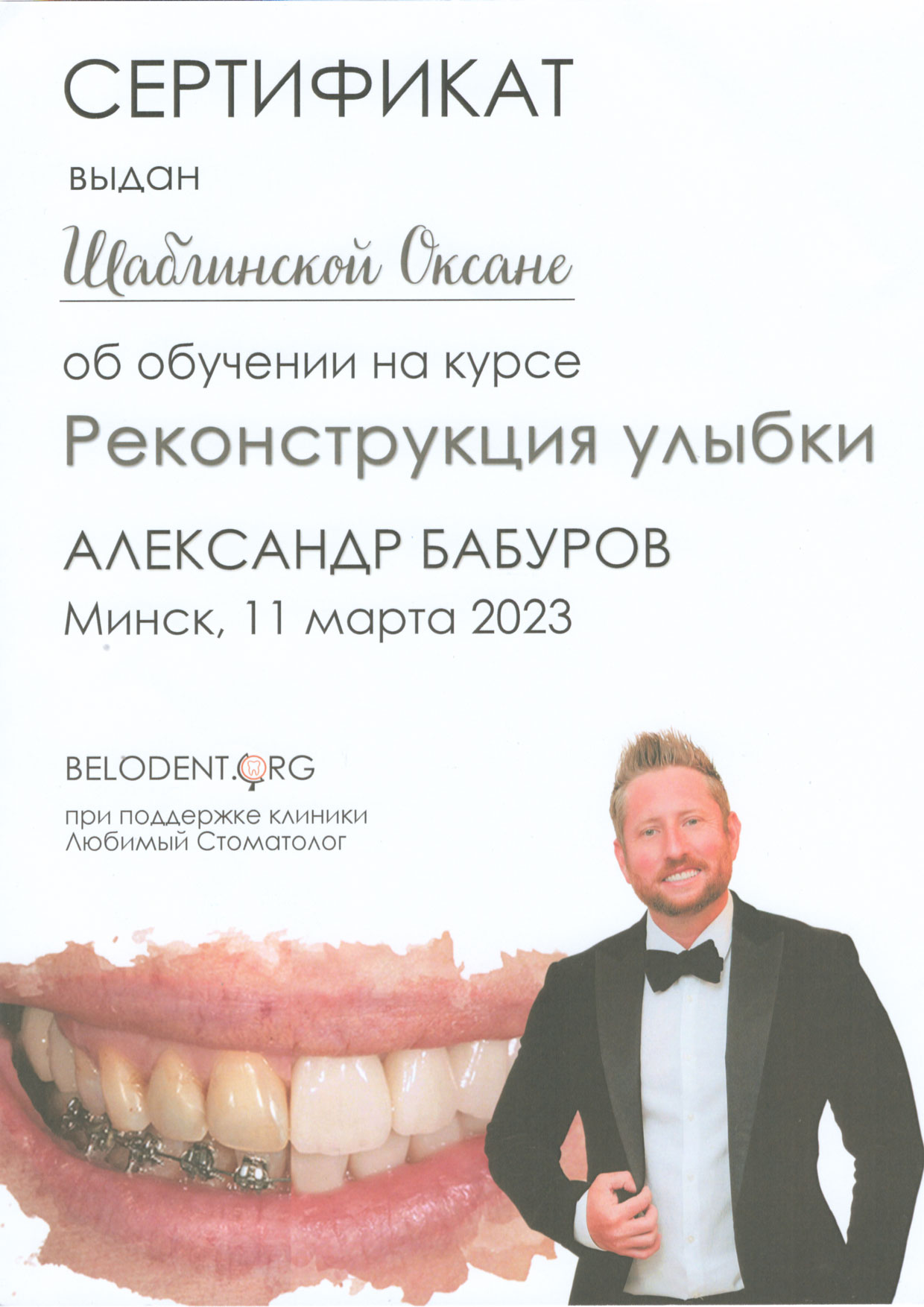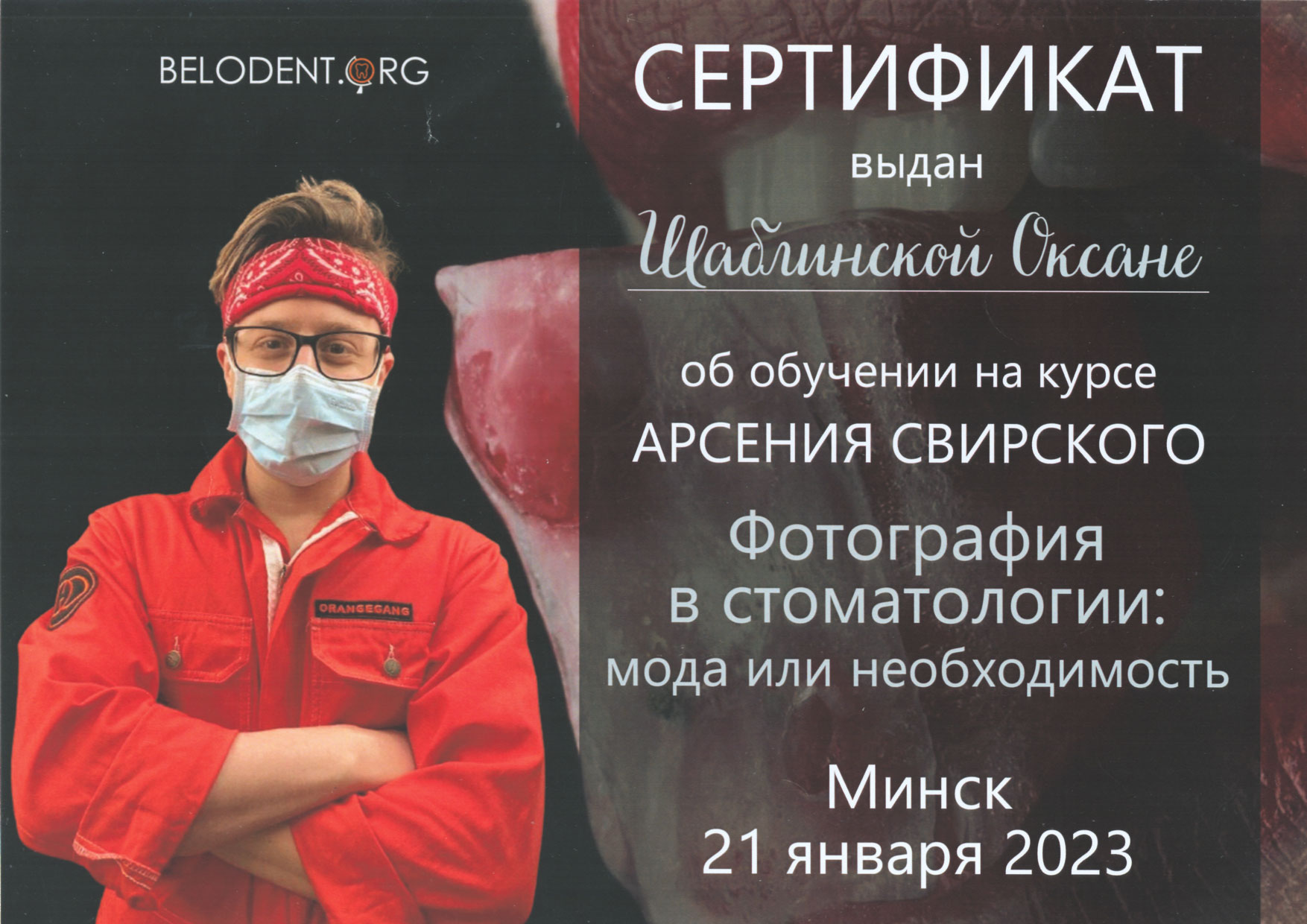 Успешно прошла обучение в клинической ординатуре на кафедре ортопедической стоматологии. Белорусского государственного медицинского университета.
