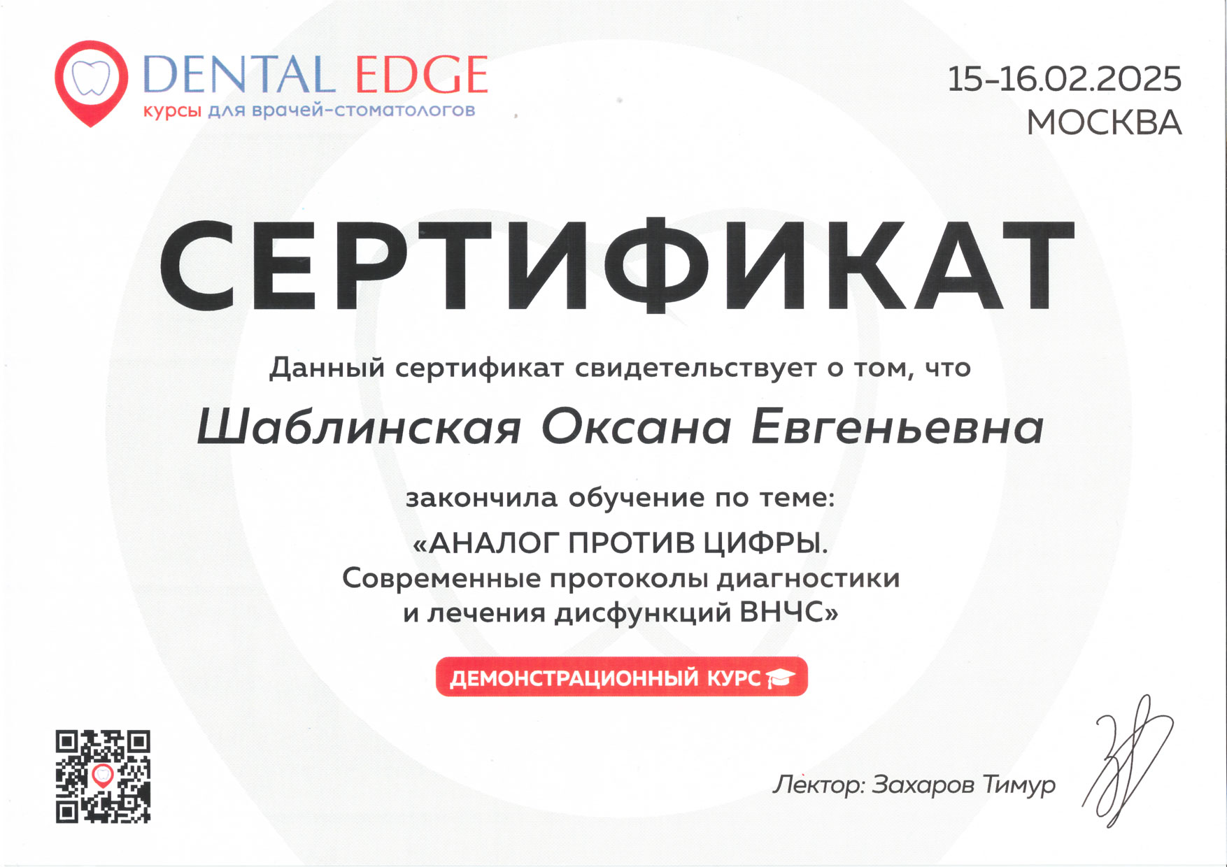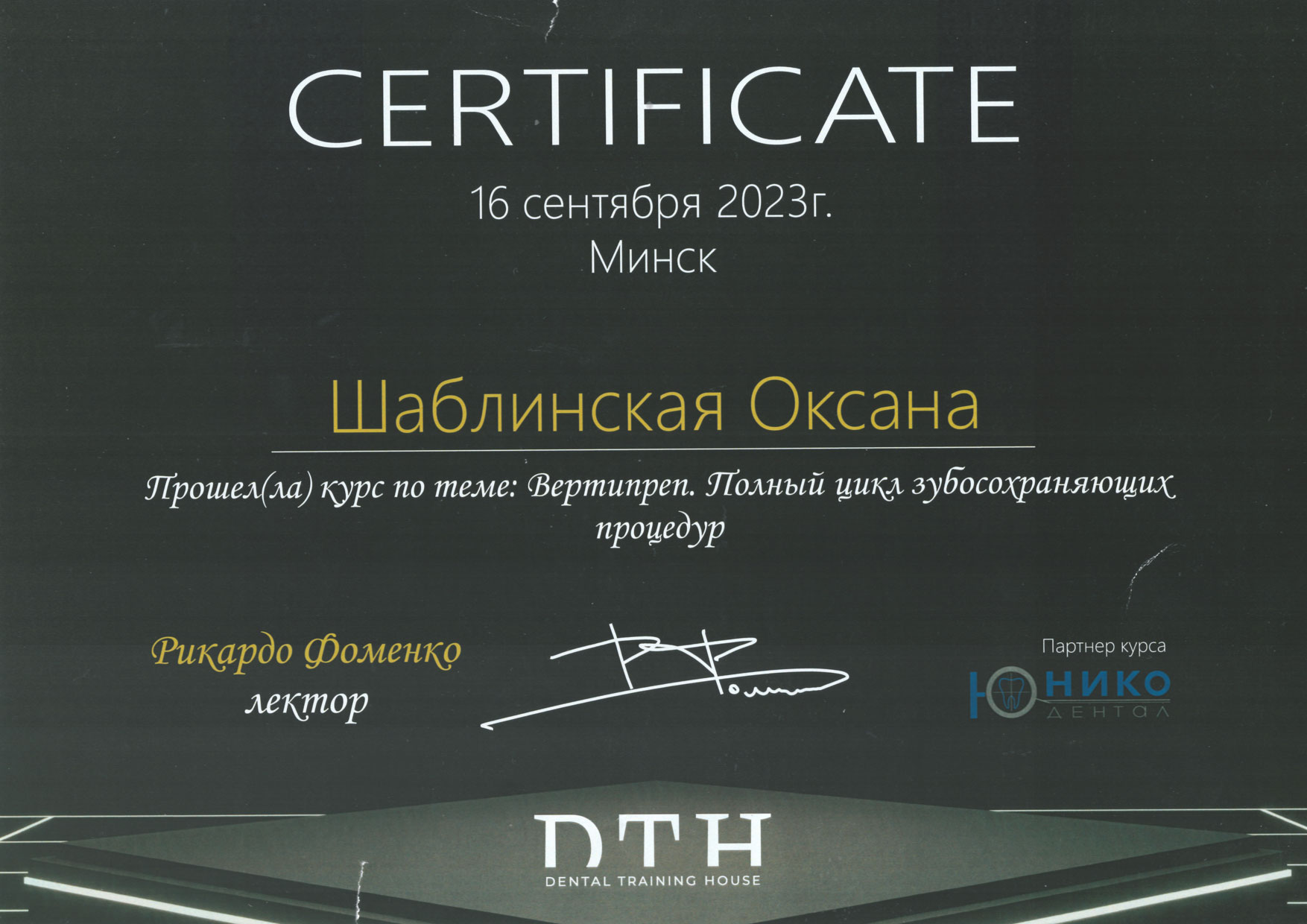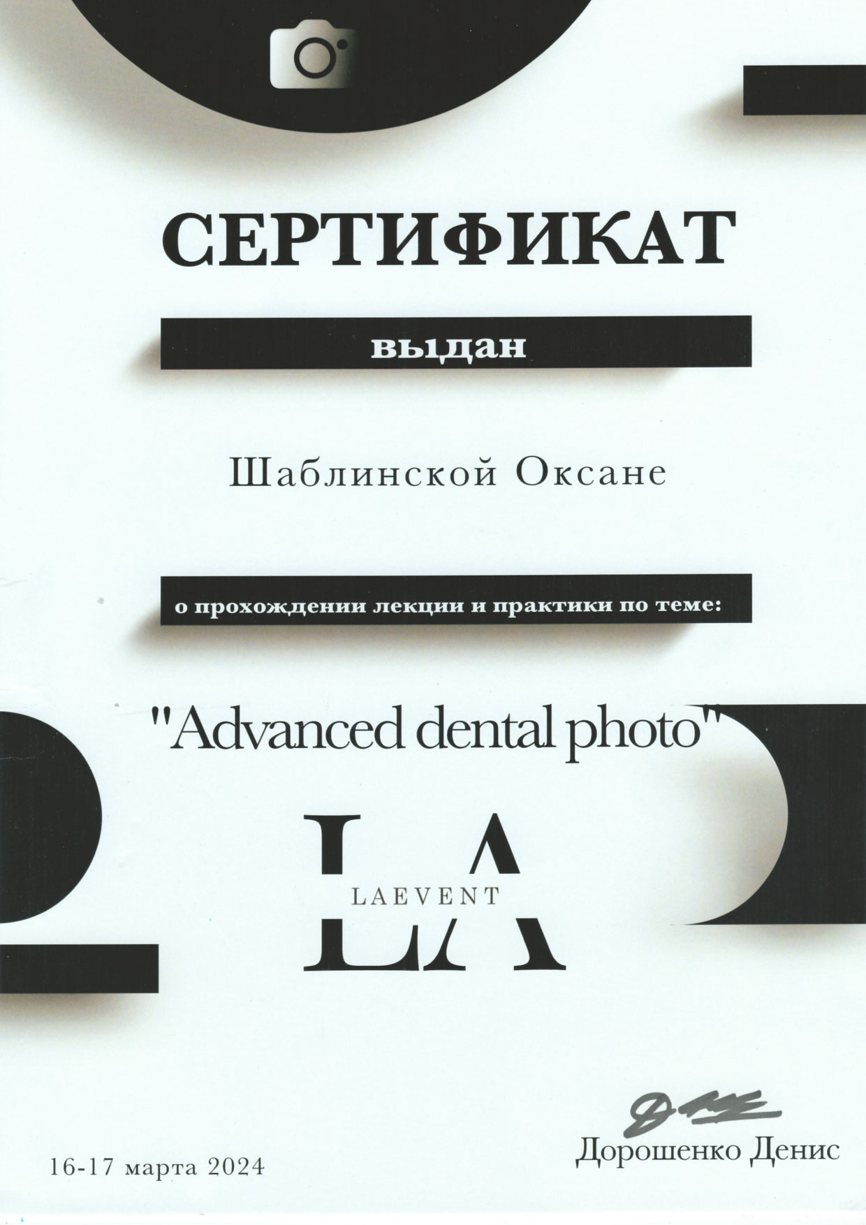 Успешно прошла обучение в клинической ординатуре на кафедре ортопедической стоматологии. Белорусского государственного медицинского университета.